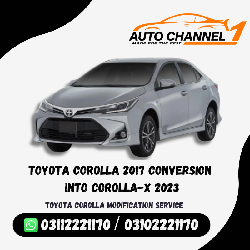 Transform your Corolla with a full Toyota Corolla 2017 Conversion into Corolla-X 2023. Modify your car with stylish exterior changes and a modern look. We also offer conversion for the other models. So, contact us before leaving this page.Â